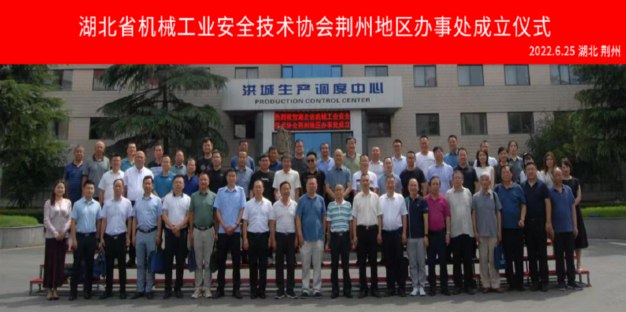 2022年6月25日,湖北省机械工业安全技术协会(以下简称“鄂机安协”)荆州地区办事处成立仪式在湖北荆州洪城工业园正式举行。鄂机安协会长同和平、秘书长陈婷、副会长汤致彪、副会长易皓等协会主要领导出席了成立仪式。