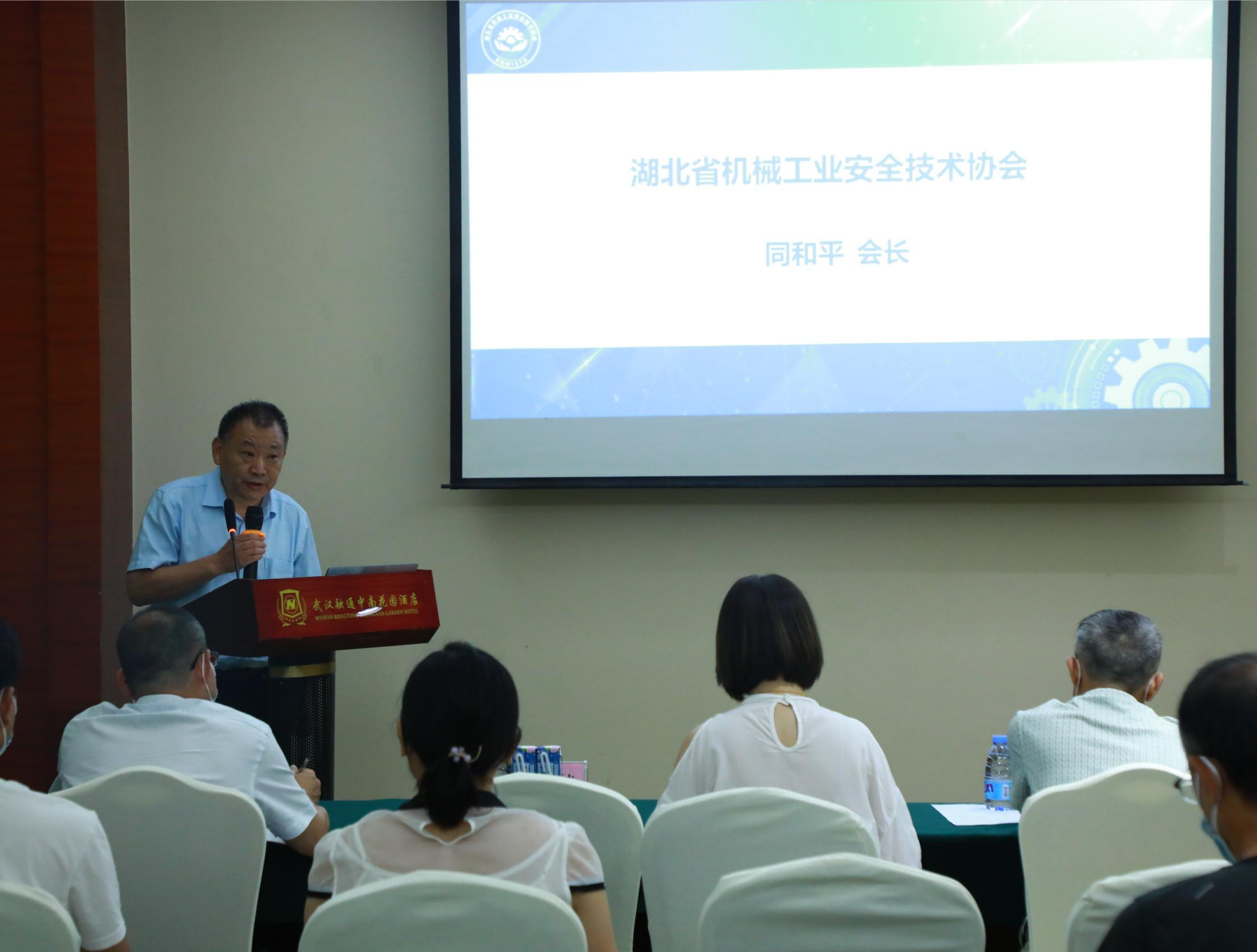 图为湖北省机械工业安全技术协会会长同和平致辞并讲话