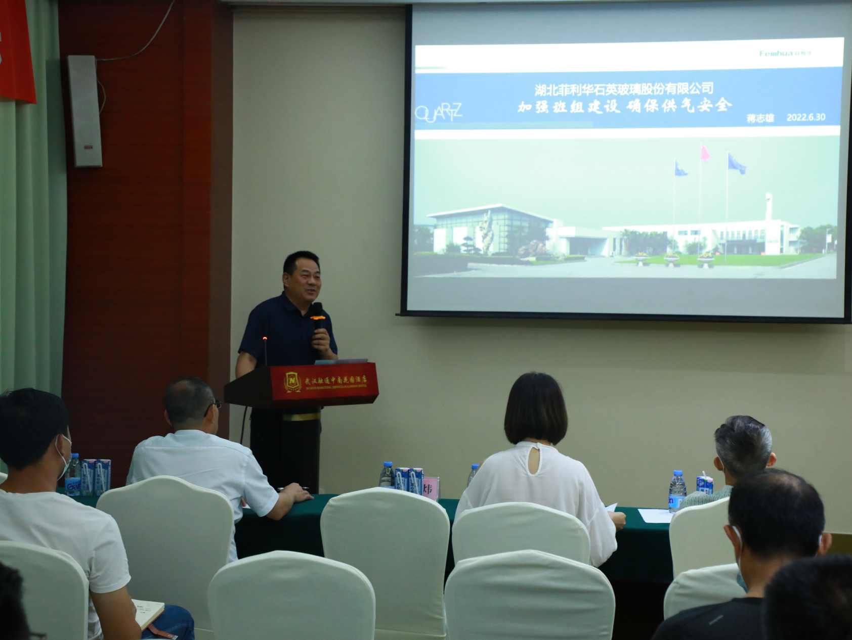 图为湖北菲利华石英玻璃股份有限公司蒋志雄分享《加强班组建设,确保供气安全》