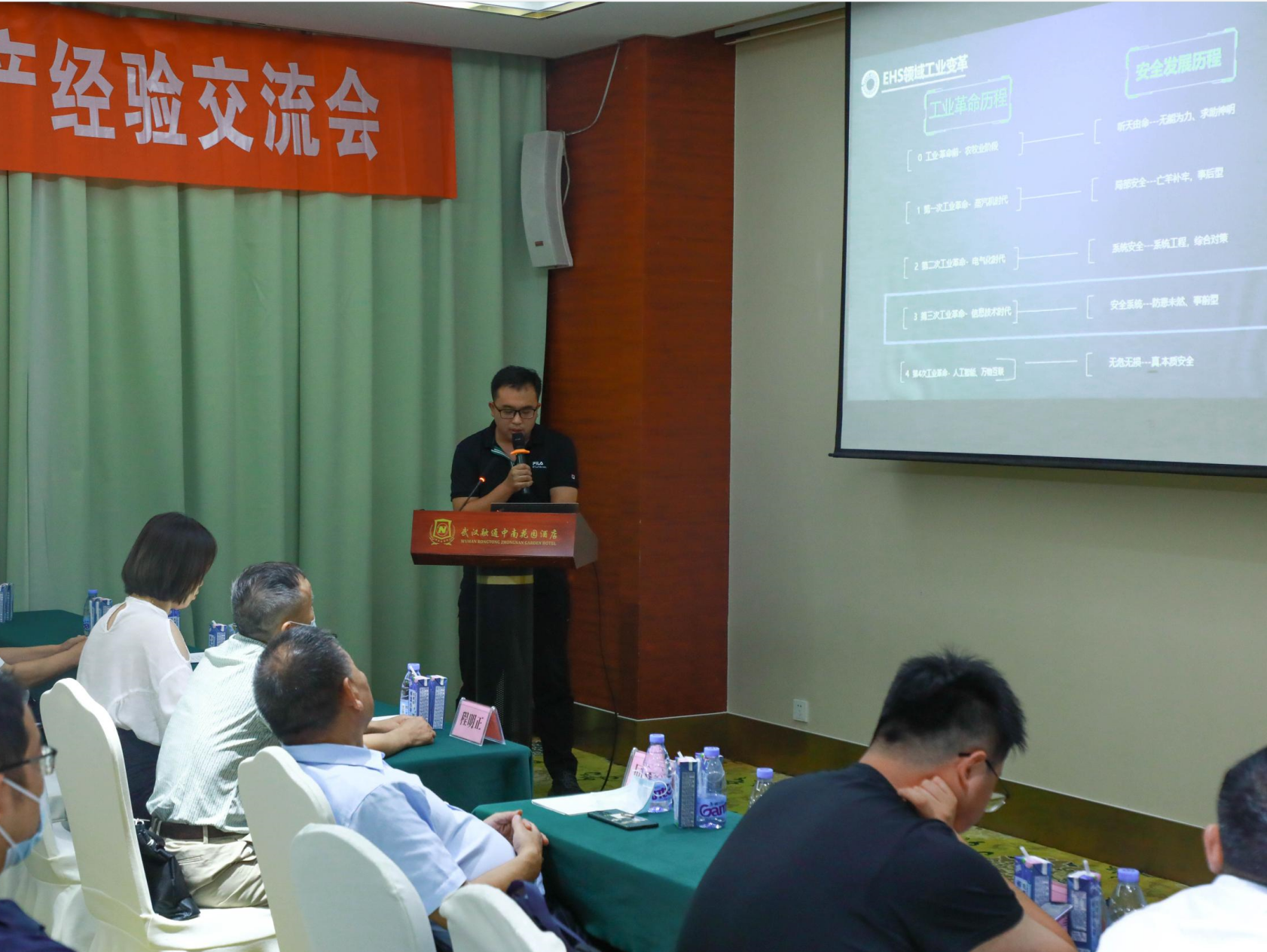 会议由湖北省机械工业安全技术协会秘书长陈婷主持,会长同和平致欢迎词并讲话,上汽通用汽车有限公司武汉分公司杨振兴、湖北菲利华石英玻璃股份有限公司蒋志雄、武汉重型机床集团有限公司冯豪、湖北三环汽车有限公司张草、蒙牛乳制品武汉有限责任公司李晨等五位嘉宾分别就《安全人机工程管理》、《加强班组建设,确保供气安全》、《体系化加强安全生产管理工作实践》、《大力开展自主安全管理、全面落实企业主体责任》和《智慧安全驾驶舱——信息化安全管理》等五个专题进行了交流分享。