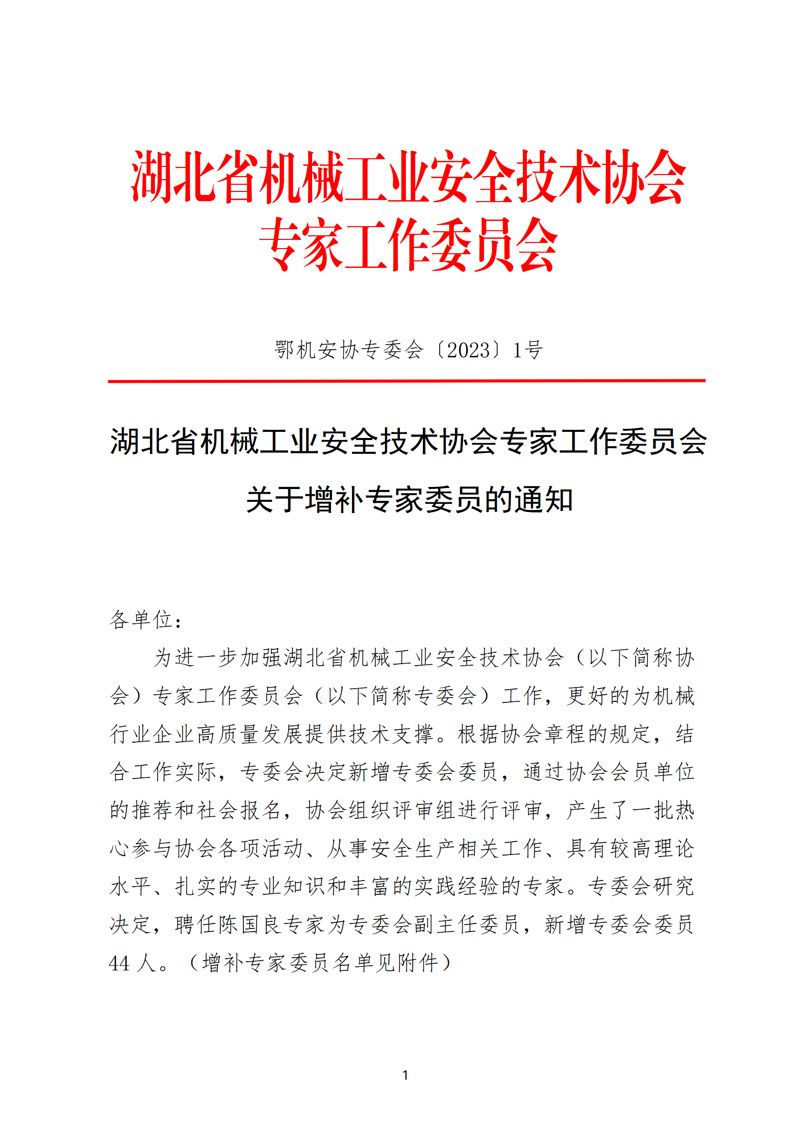 Ma-chinery Industrial Safety Technology Association of Hubei Province