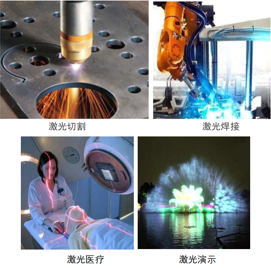 激光广泛应用于切割、焊接、打标、打孔、雕刻、医疗、美容、演示、照排、制冷、检测、测量等方面。