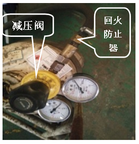 (2)减压器在气瓶上应安装牢固,采用螺纹连接时应拧足五个螺扣以上,采用专门的夹具压紧时应平整牢固。