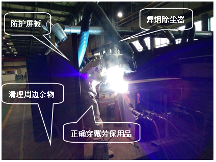 (4)焊接和切割区域必须予以明确标明,并且应有必要的警告标志。