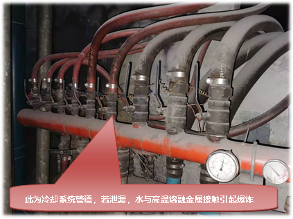 冷却水或液压油接触高温金属溶液而引起爆炸。