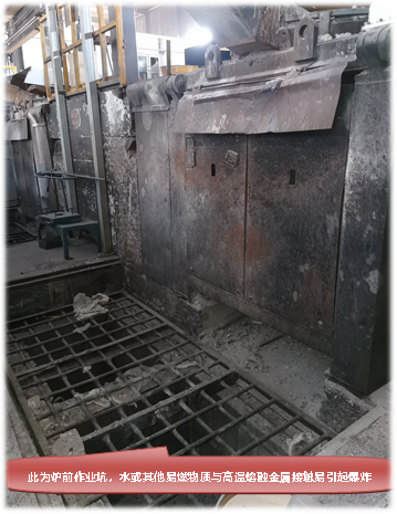 水、油或易燃物品遇高温熔融金属产生爆炸。