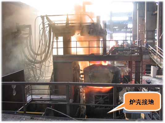 电弧炉金属炉壳带电,导致周边操作者触电。