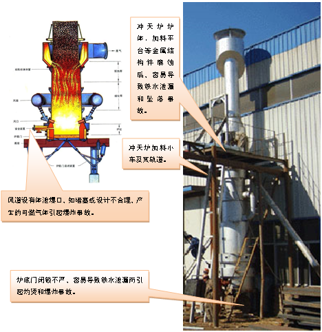 导致铁水泄漏和炉体爆炸、物体打击、灼烫和其他伤害。